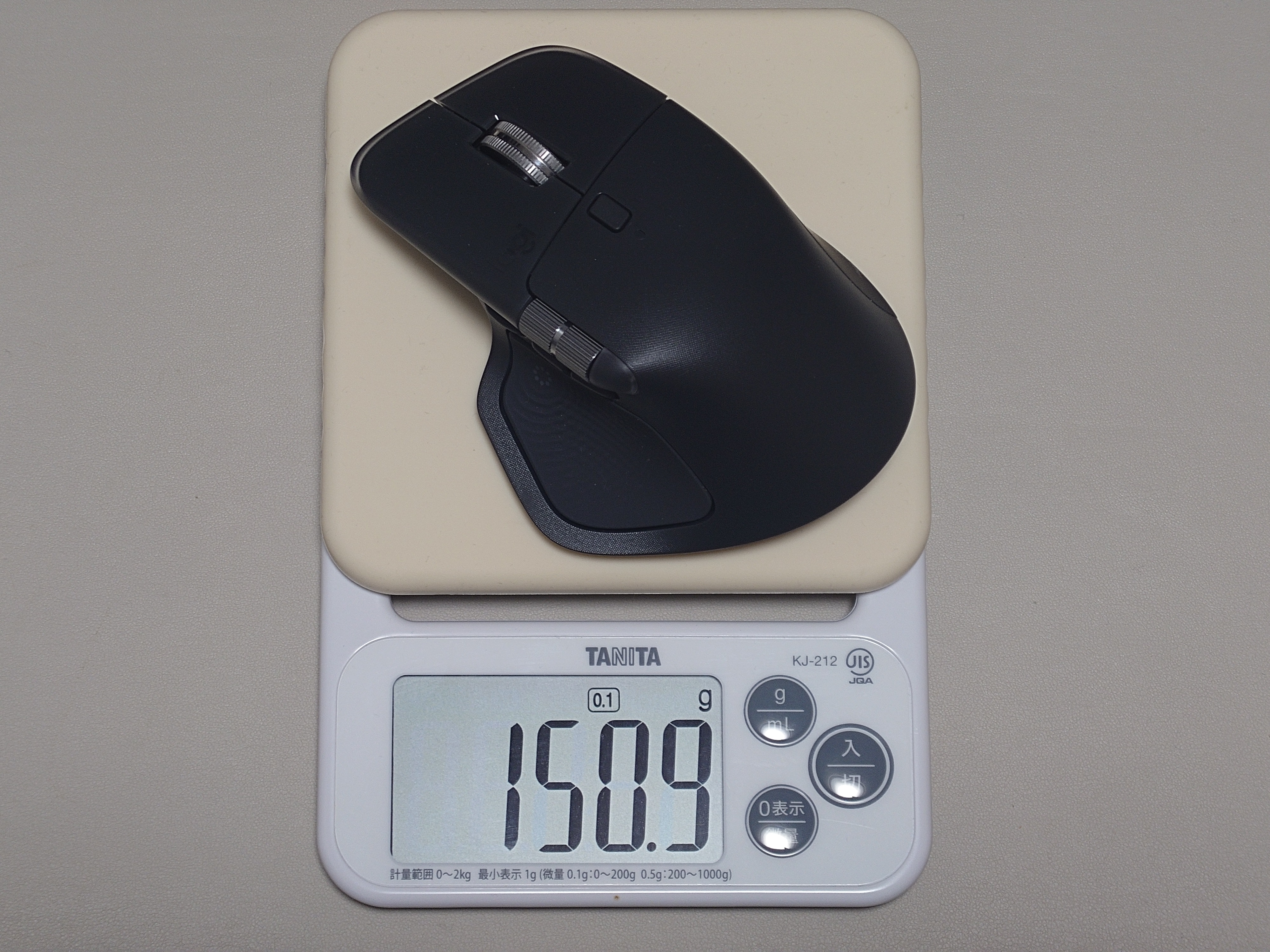 MX Master 4は、正直に言うと「ずっしりとした重さ(約140g前後)」があるマウスです。