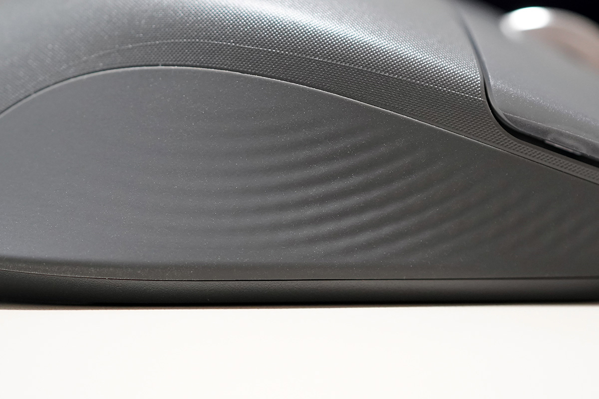 こちらにはジェスチャーボタンも複数ついており、また親指が当たるサイド部分には波打つようなテクスチャが施されており、指にしっかりフィットして操作性を高めてくれます。